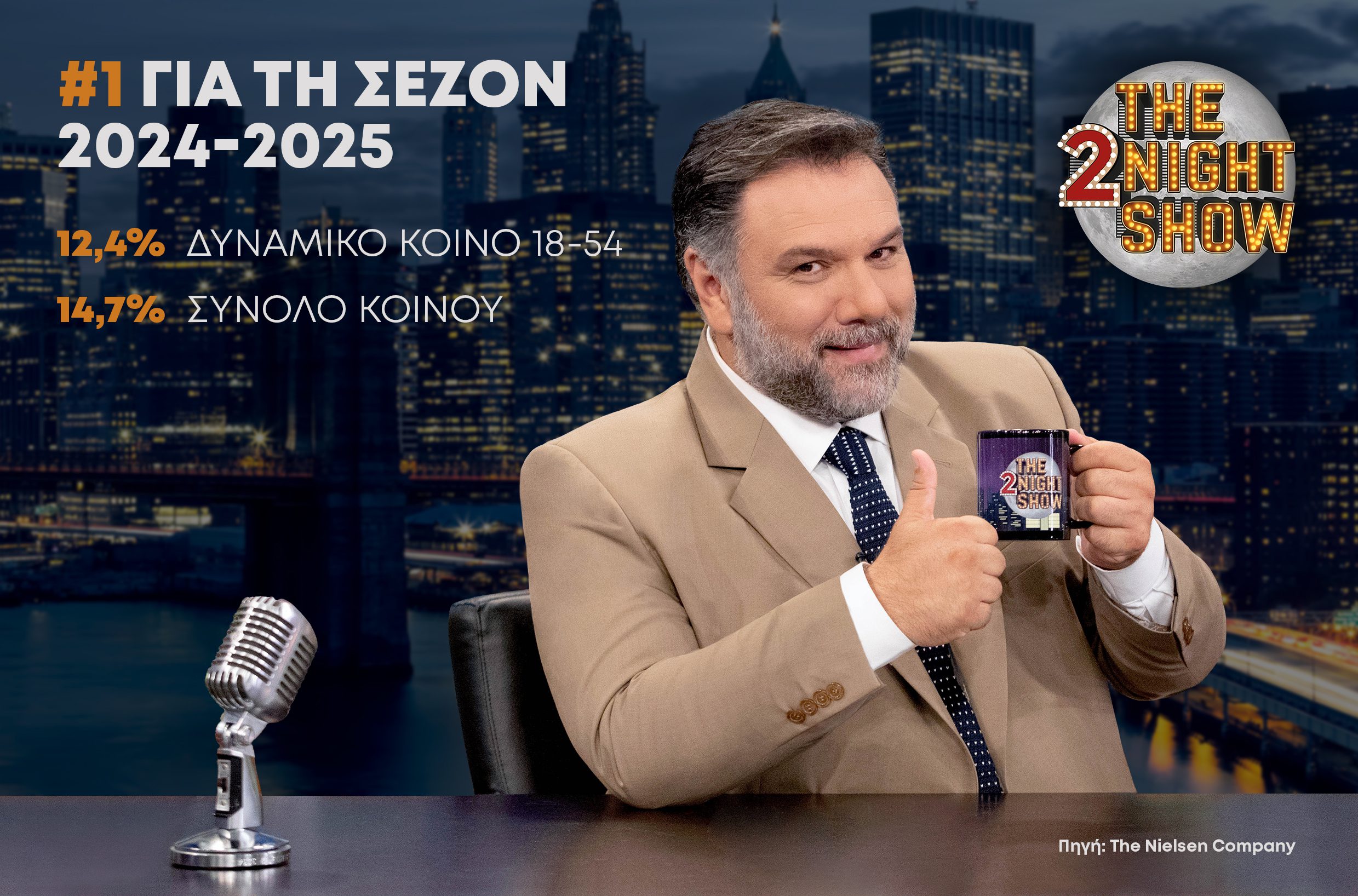 Με 12,4% στο δυναμικό κοινό και 14,7% στο σύνολο, το «The 2Night Show» αποχαιρέτησε την 9η σεζόν στην κορυφή, ανανεώνοντας το ραντεβού του για τον επόμενο τηλεοπτικό χειμώνα.