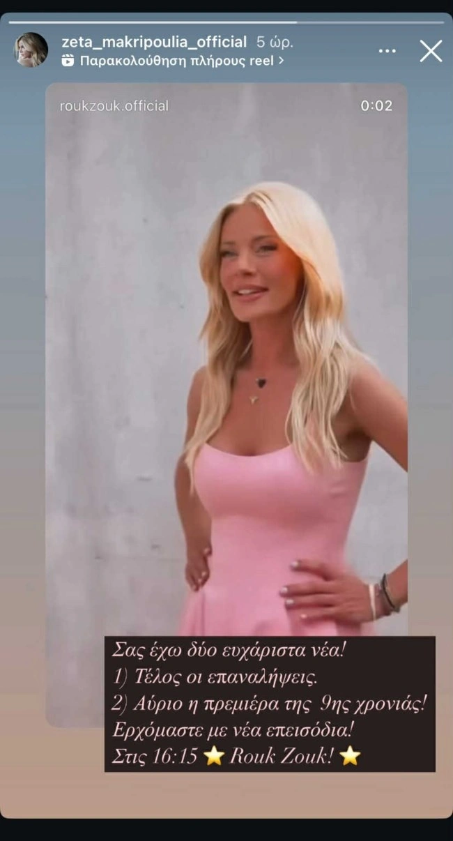 Μέσα από τον λογαριασμό της στο Instagram, η Ζέτα δημοσίευσε ένα μήνυμα που ενθουσίασε τους followers της. Όπως αποκάλυψε, οι επαναλήψεις ολοκληρώθηκαν και από αύριο το μεσημέρι ξεκινούν τα καινούργια επεισόδια.
