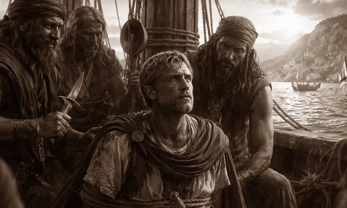 Λίγα χρόνια αργότερα η Ρώμη θα κινητοποιούσε τεράστιες δυνάμεις για να καθαρίσει τη Μεσόγειο. Ομως πριν από τους μεγάλους νόμους και τις εκστρατείες, ένας νεαρός που γελούσε μέσα στην αιχμαλωσία του είχε ήδη χαράξει τη δική του απάντηση.