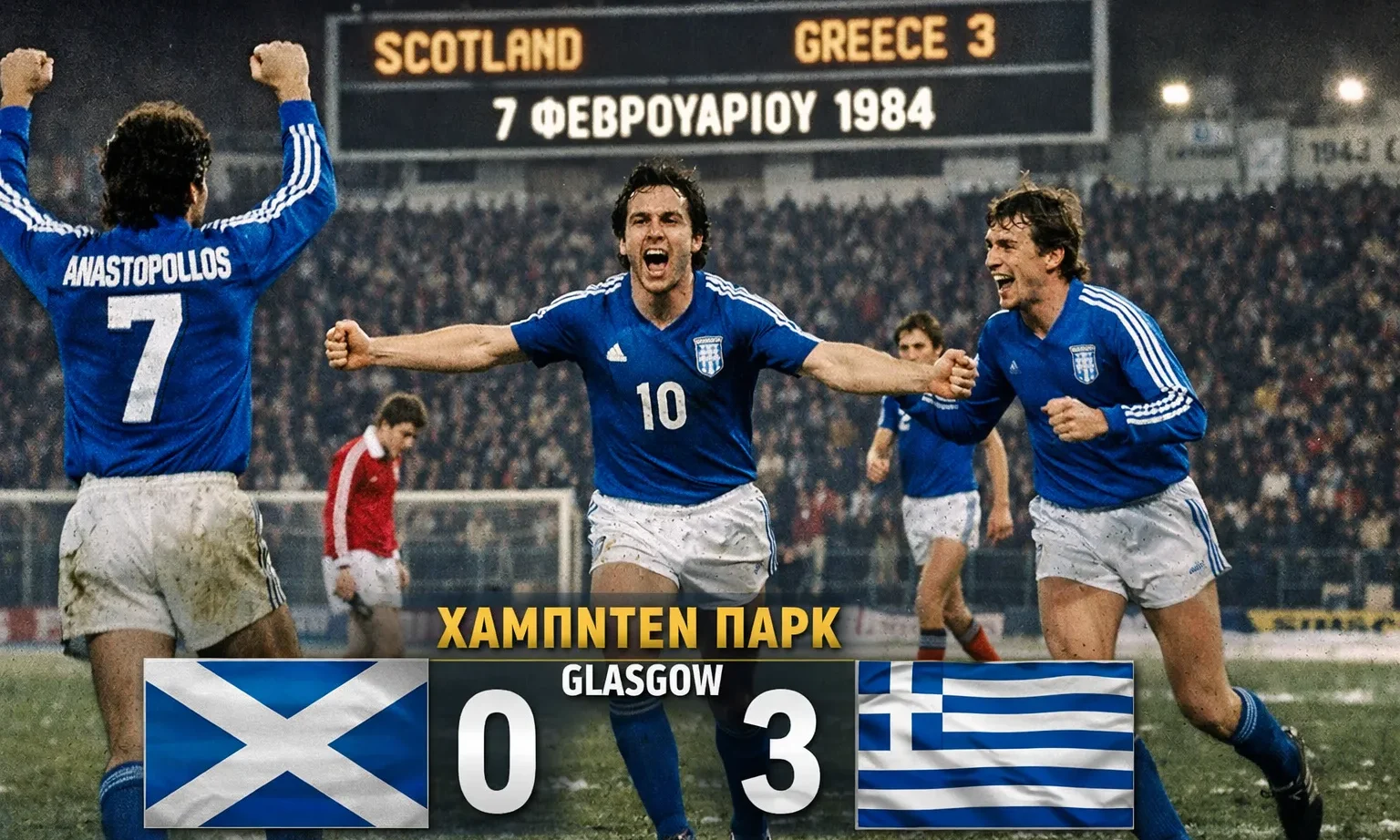 Σαν σήμερα, το 1984, η Εθνική Ελλάδας πέτυχε μια από τις πιο σπουδαίες εκτός έδρας νίκες της, επικρατώντας της Σκωτίας με 3-0 στο θρυλικό Χάμπντεν Παρκ. Ένα αποτέλεσμα που τότε έμοιαζε σχεδόν αδιανόητο, αλλά έγινε πραγματικότητα με τρόπο εκκωφαντικό.