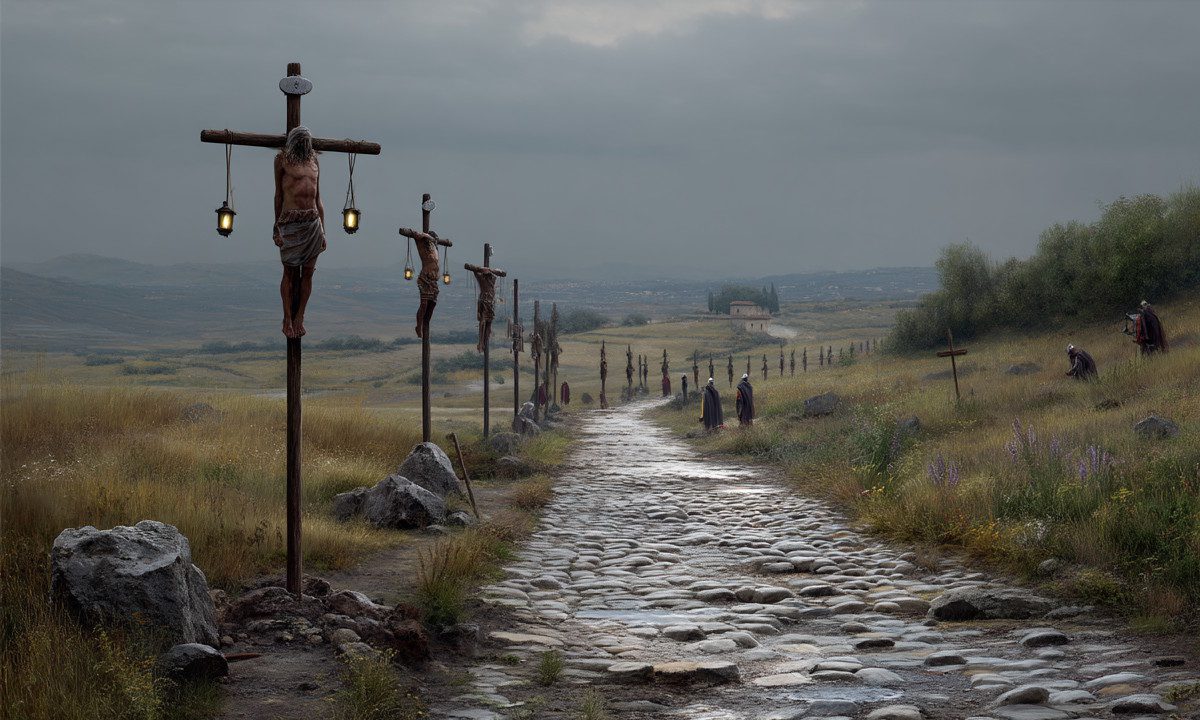 Μια αυτοκρατορία χτίστηκε πάνω σε αλυσίδες και αίμα. Οι σταυρώσεις στην Αππία Οδό δεν ήταν απλώς τιμωρία – ήταν το μανιφέστο τρόμου μιας κοινωνίας που στηρίχθηκε στη δουλεία.
