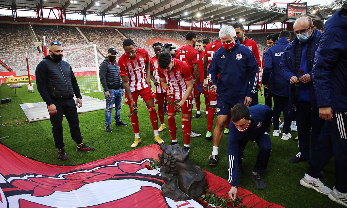 Οι παίκτες των δύο ομάδων αφού παρακολουθήσαν το βίντεο, στη συνέχεια κατευθύνθηκαν στο πέταλο της Θύρας 7. Εκεί όπου άφησαν όλοι οι ποδοσφαιριστές από ένα λουλούδι.