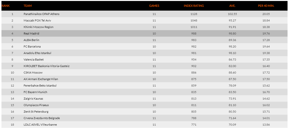 Το θέμα όμως είναι η σαφώς ισχυρότερη Euroleague. Και ο Παναθηναϊκός, όπως μπορείτε να δείτε στον πίνακα που ακολουθεί, έχει την καλύτερη επίθεση με μέσο όρο 88,45 πόντων ανά αγώνα.