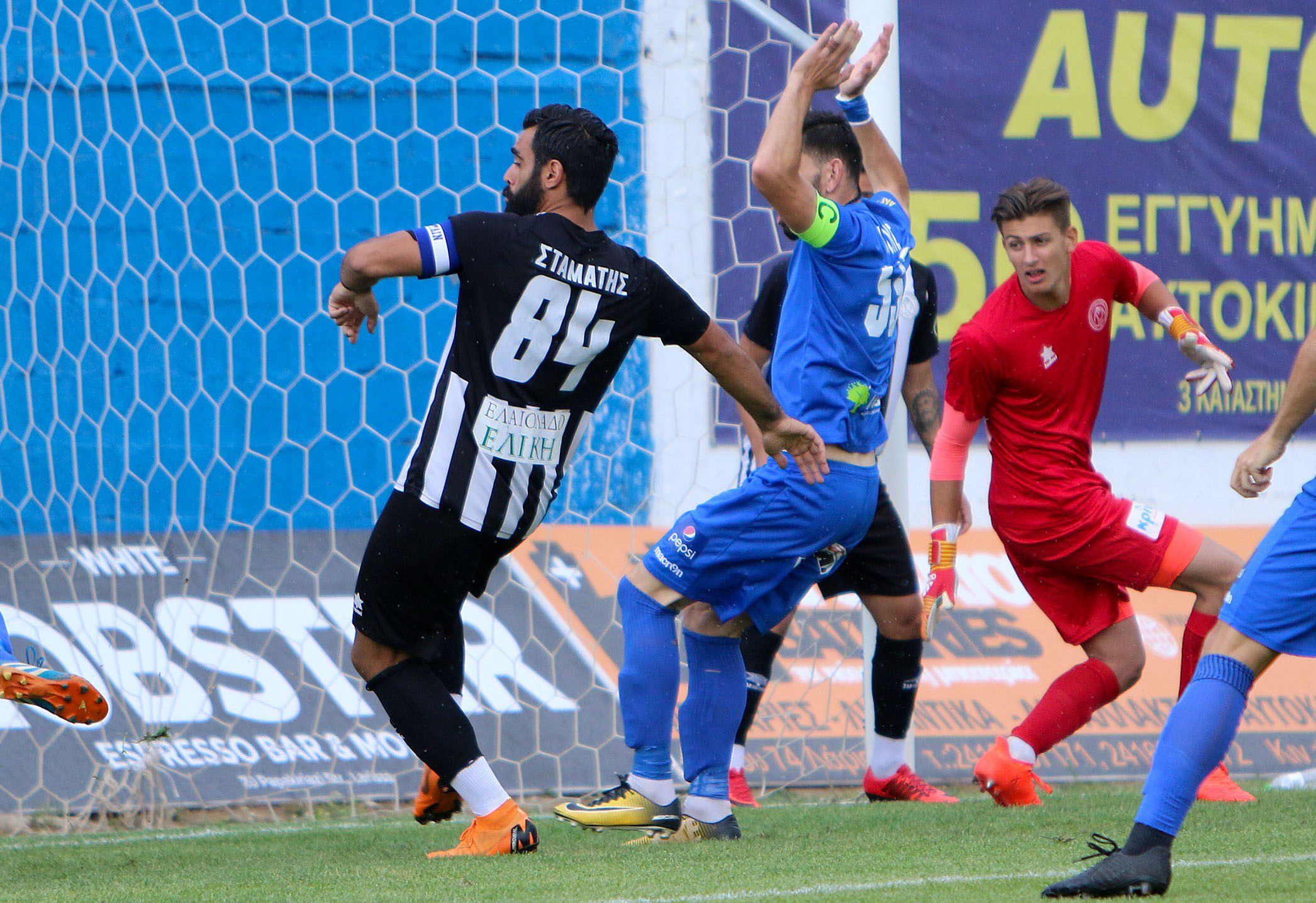 Συνεπώς, η ομάδα της Αχαΐας υποχρεώθηκε να βάλει κάτω από τα γκολπόστ τον σέντερ φορ Ανδρέα Σταματή, ο οποίος δέχθηκε ένα γκολ κατά το διάστημα που αγωνίστηκε, τη στιγμή που οι συμπαίκτες του έβαλαν δύο!