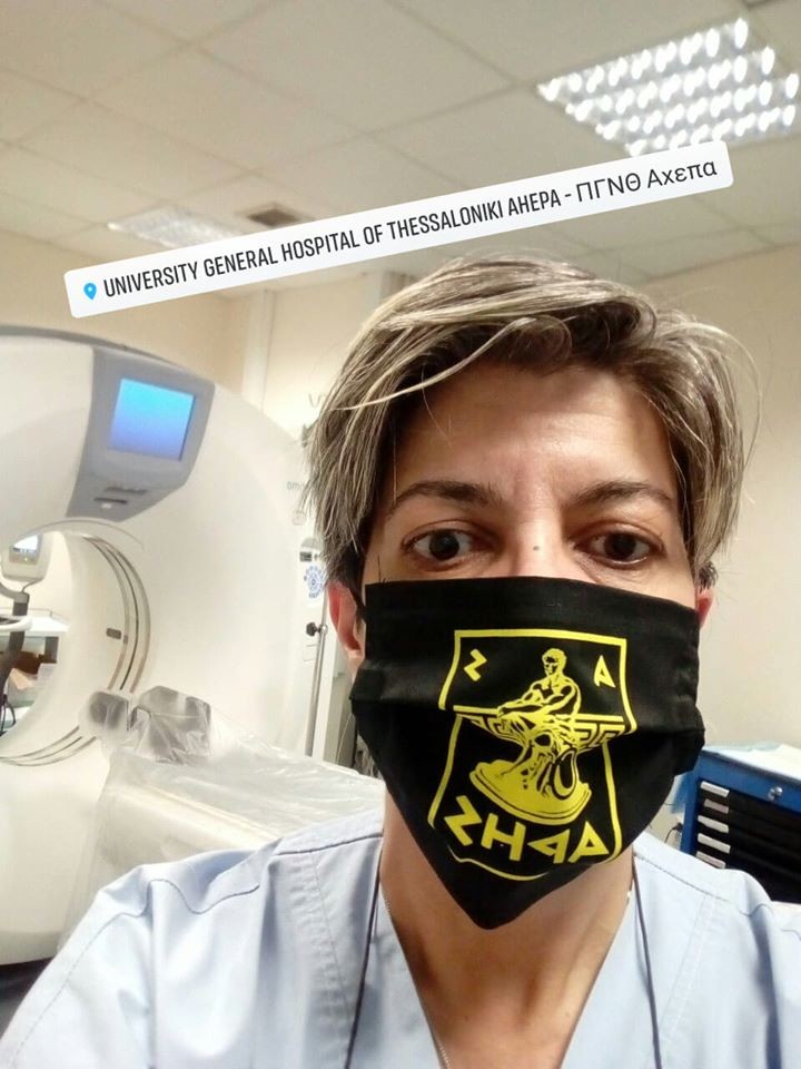 «Καλή Ανάσταση, με υγεία και επιτυχίες για την Αρειανάρα μας #stayhome #staysafe», έγραψε η χειρίστρια αξονικού τομογράφου Φιλιώ Μαργέτα.