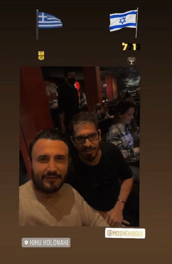 Μάλιστα ο Καρυπίδης ανάρτησε μια φωτογραφία στον προσωπικό του λογαριασμό στο Instagram, στην οποία εμφανίζεται μαζί με τον ιδιοκτήτη της ισραηλινής ομάδας, Μοσέ Χογκέγκ, σε γνωστό μαγαζί στο Κολωνάκι.