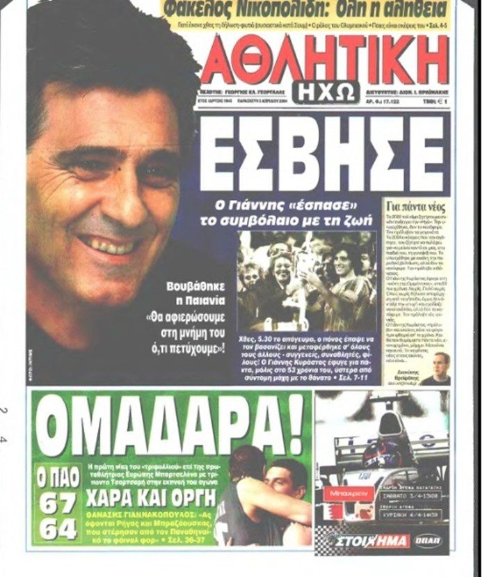 Δείτε πώς είχαν τιμήσει τον Γιάννη Κυράστα τα πρωτοσέλιδα της εποχής: