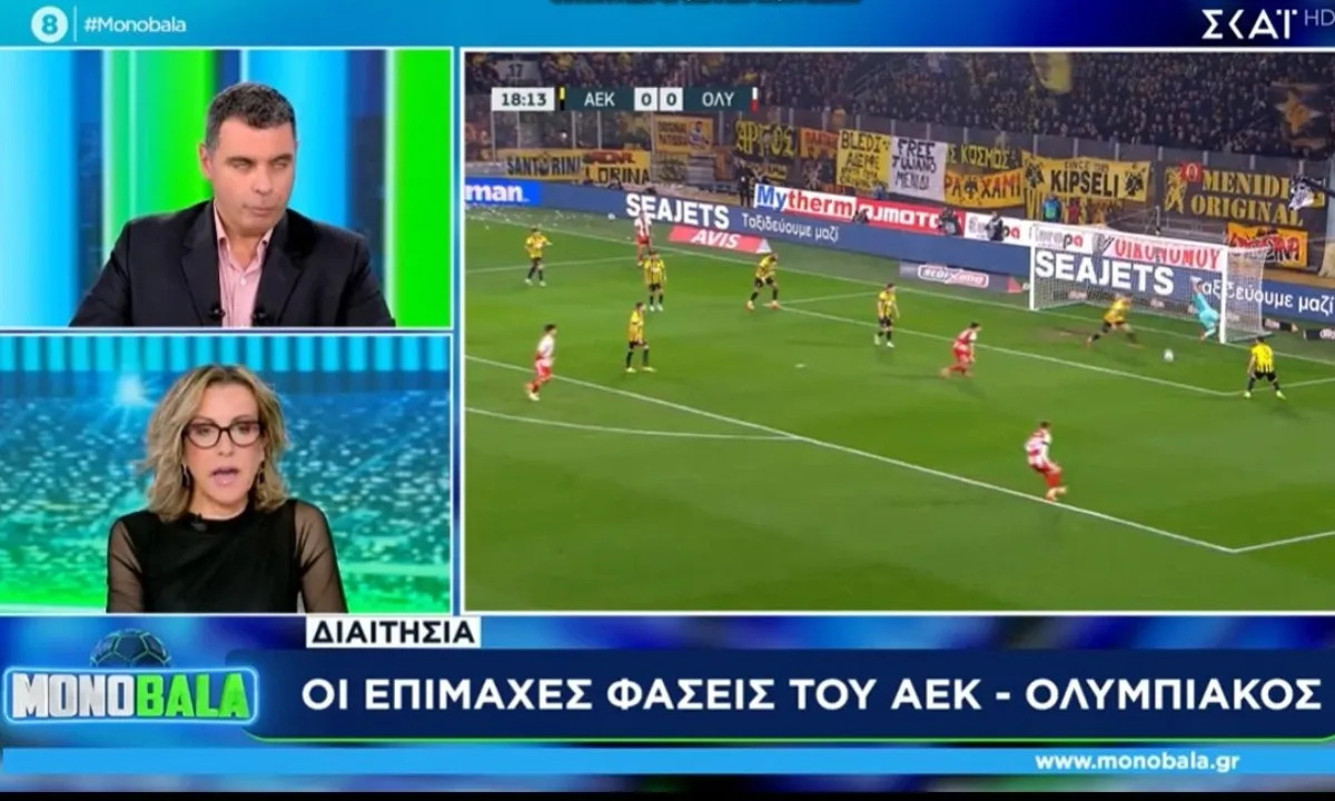 ΑΕΚ – Ολυμπιακός : Η Ελένη Λαμπαδαρίου δεν βλέπει κόκκινη κάρτα στον Ποντένσε (vid)