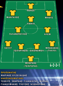Από εκεί και πέρα, ο Λούκας Μπογέ διατηρεί πολλές πιθανότητες να ξεκινήσει ως δεξί εξτρέμ, με τον Μάνταλο στα αριστερά και τον Λιβάια πίσω από τον Πόνσε. Ο Κροάτης εξάλλου, επέστρεψε έπειτα από τέσσερις αγωνιστικές της τιμωρίας που του επιβλήθηκε και εφόσον βρεθεί σε καλό βράδυ αναμένεται να είναι καταλυτικός.