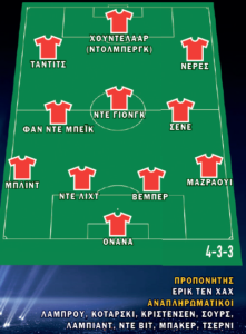 Στους απόντες φυσικά και ο Χακίμ Ζιγές, το κενό του οποίου θα καλύψουν οι Τάντιτς και Νέρες στις πλευρές, στο κλασικό 4-3-3 του “Αίαντα”. Στην αρχική ενδεκάδα ενδέχεται να είναι και ο νεαρός Βέμπερ, δίπλα στον Ντε Λιχτ.