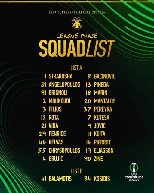 Η ΑΕΚ ανακοίνωσε την ευρωπαϊκή λίστα και όπως είναι λογικό υπήρξαν… μπαμ όσον αφορά παίκτες που έμειναν εκτός.