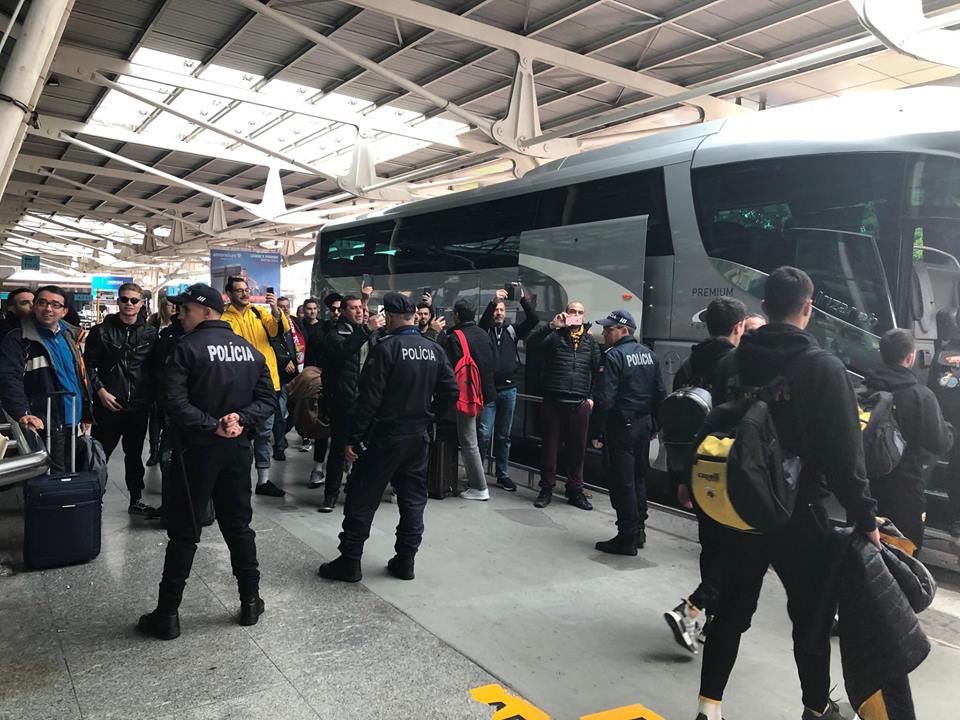 Πολλοί φίλοι της Ένωσης όπου βρίσκονταν νωρίτερα στην πορτογαλική πρωτεύουσα, κατευθύνθηκαν προς το αεροδρόμιο και περίμεναν την “κιτρινόμαυρη” αποστολή.