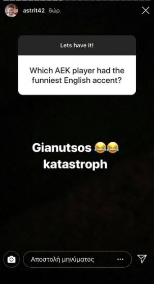 Αυτό μπορεί να διαπιστώσει κανείς κοιτώντας το Instagram του Αλβανού χαφ. Δέχτηκε αρκετές ερωτήσεις από followers και ανάμεσα σε αυτές ήταν και κάποιες από φίλους της ΑΕΚ.