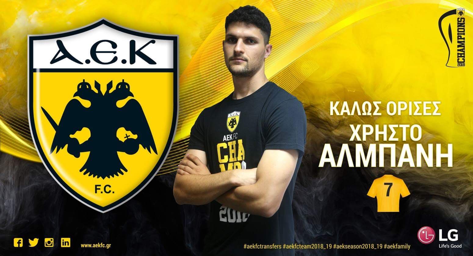 «Η ΠΑΕ ΑΕΚ ανακοινώνει την απόκτηση του Χρήστου Αλμπάνη από τον Απόλλωνα Σμύρνης. Ο ποδοσφαιριστής υπέγραψε συμβόλαιο διάρκειας τριών ετών.