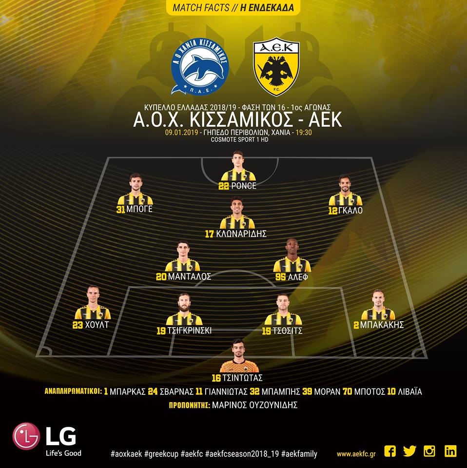 Με ορισμένες διαφοροποιήσεις θα παρατάξει ο Μαρίνος Ουζουνίδης την ΑΕΚ για το ματς του Κυπέλλου (19:30, cosmotesport 1) κόντρα στον ΑΟΧ Κισσαμικό.