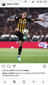 Η χθεσινή του απόδοση μετην ΑΕΚ στον τελικό κυπέλλου με τον ΠΑΟΚ κυμάνθηκε σε ρηχά επίπεδα. Ωστόσο, ο Όγκνιεν Βράνιες, μπορεί να έχασε το τρόπαιο, αλλά αυτό δεν τον εμπόδισε από το να συνεχίσει τα αιχμηρά ποσταρίσματά του στο Instagram.