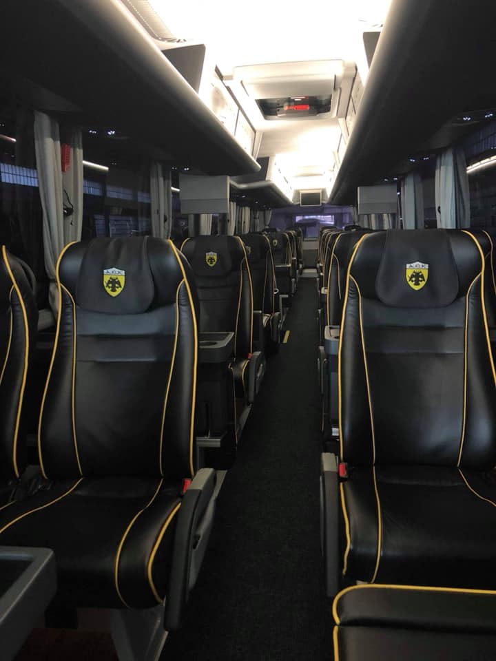 Την ίδια ώρα, το νέο πούλμαν της ΑΕΚ “ζεσταίνει” τις μηχανές του για το παρθενικό του δρομολόγιο σε αγώνα της Ένωσης, με τις φωτογραφίες να είναι εντυπωσιακές τόσο στο εξωτερικό, όσο και στο εσωτερικό του.