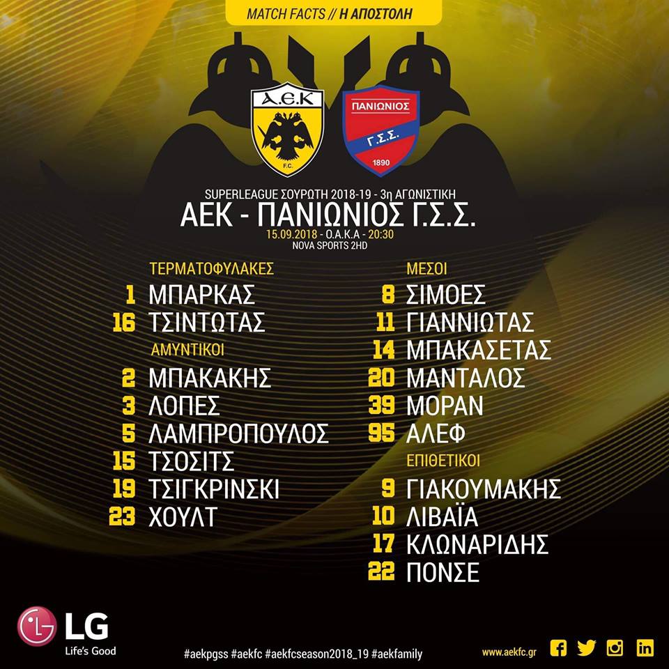 Αναλυτικά οι εκλεκτοί για το ματς με τους Νεοσμυρνιώτες: