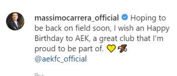 Για τα 96α γενέθλια της ΑΕΚ δεν θα μπορούσε να μην δώσει τις δικές του ευχές και ο προπονητής της ομάδας, Μάσιμο Καρέρα μέσα από τα social media.