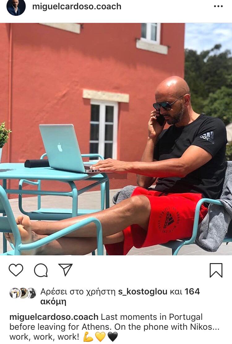 «Τελευταίες στιγμές στην Πορτογαλία, πριν αναχωρήσω για την Αθήνα. Στο τηλέφωνο με τον Νίκο. Δουλειά, δουλειά, δουλειά…» έγραψε χαρακτηριστικά ο Πορτογάλος. Και το συνόδευσε με κιτρινόμαυρες καρδιές.