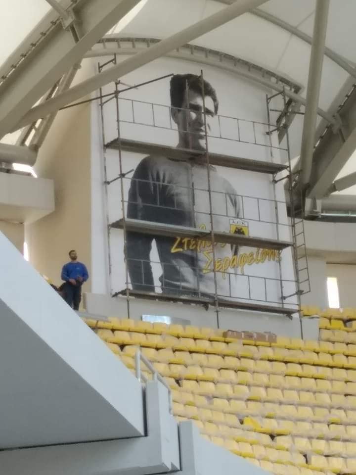 Μάλιστα, ήδη έχουν αρχίσει και τοποθετούνται και κυκλοφόρησε και η πρώτη φωτογραφία με τον πυλώνα που έχει τον Σεραφείδη, με φωτογραφία του ως ποδοσφαιριστής, το όνομα του και το σήμα της ΑΕΚ.