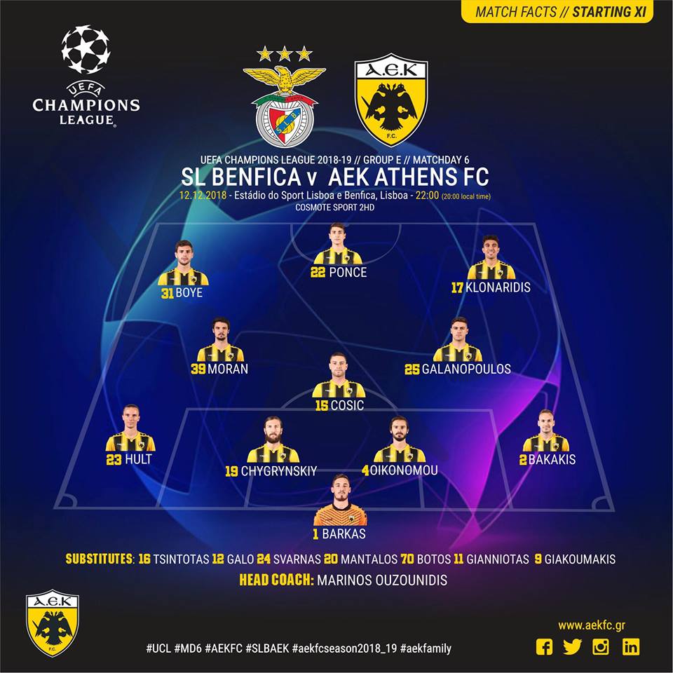 Με μια έκπληξη θα ξεκινήσει η ΑΕΚ σε λίγη ώρα (22:00, cosmotesport 2) κόντρα στην Μπενφίκα, στο “Ντα Λουζ”.