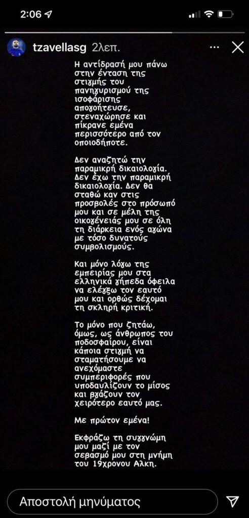 Τζαβέλλας: «Πίκρανα τον εαυτό μου, ορθώς δέχομαι σκληρή κριτική»