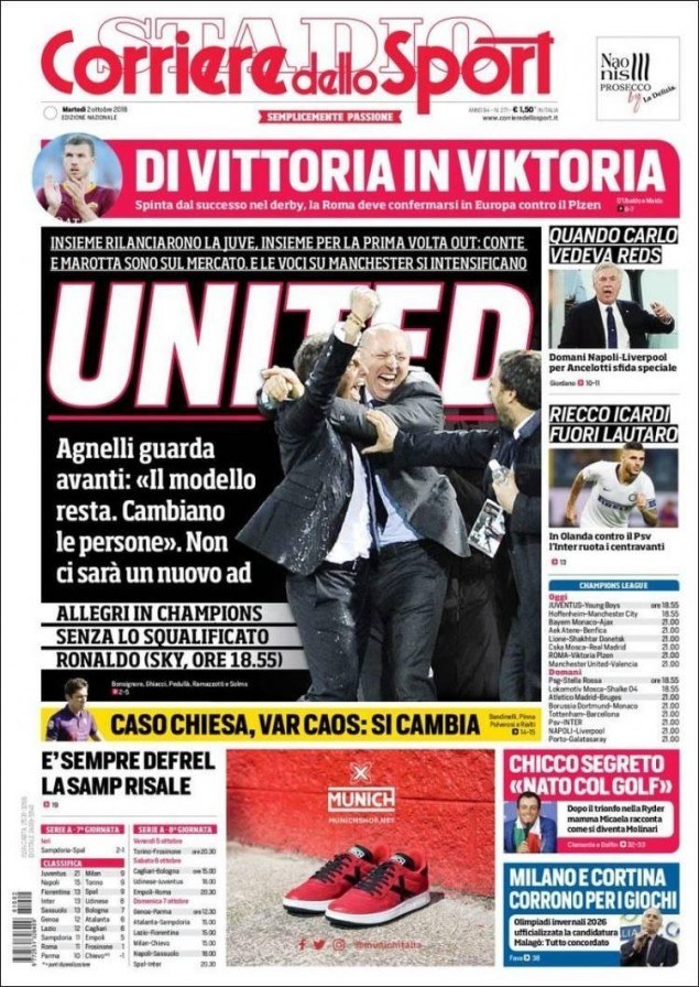 Επίσης, η εφημερίδα αποκαλύπτει πως οι άνθρωποι της Γιουνάιτεντ εξετάζουν το ενδεχόμενο να αντικαταστήσουν τον Εντ Γούντγουορντ με τον Τζουσέπε Μαρότα στη θέση του εκτελεστικού διευθυντή της ομάδας, ο οποίος αποχώρησε πρόσφατα από τη Γιουβέντους.