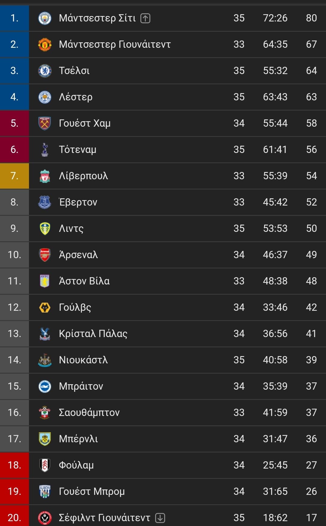 Τα αποτελέσματα της 35ης αγωνιστικής της Premier League: