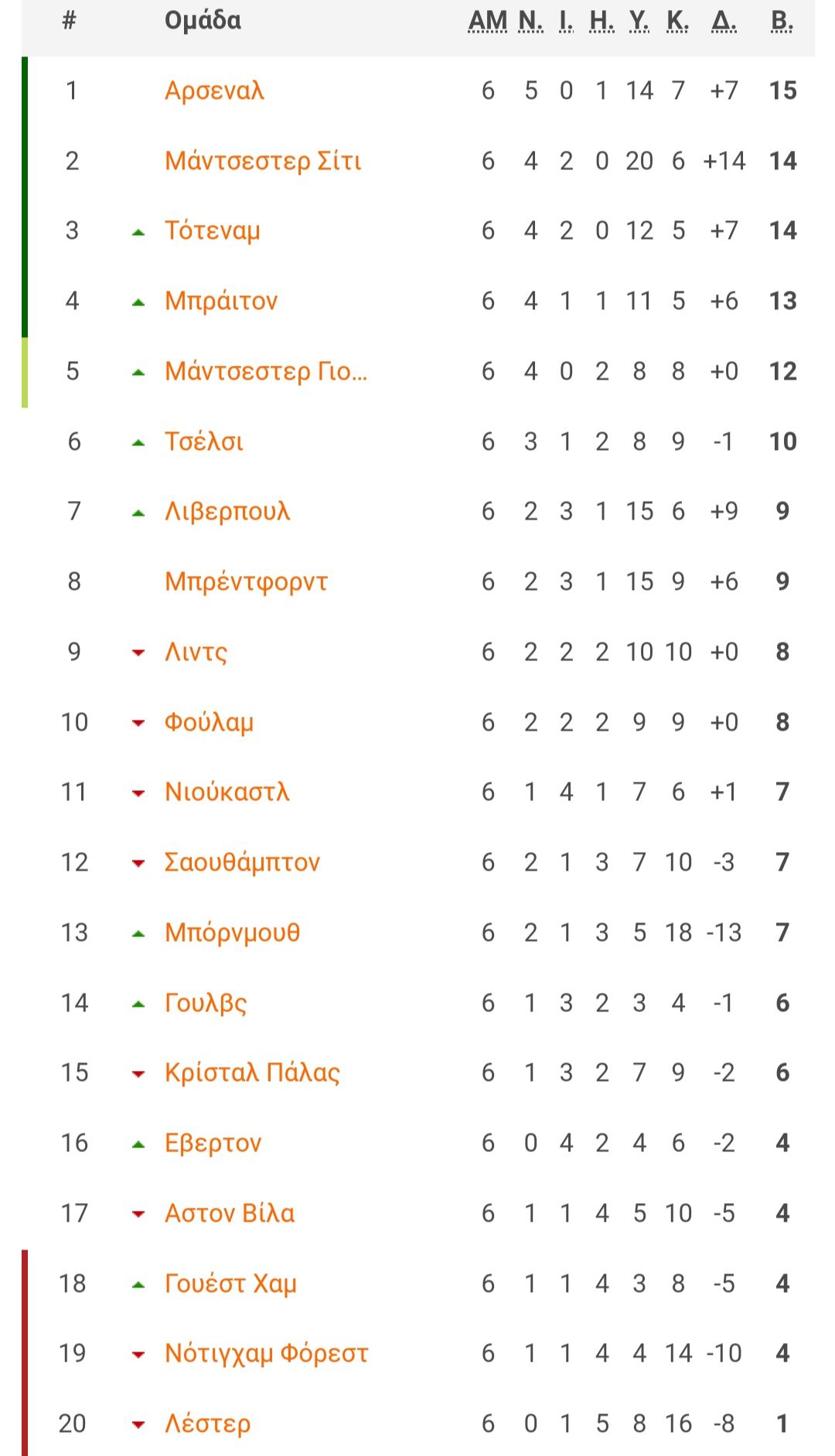 Παρόλα αυτά παραμένει στη βαθμολογία κάτω από την Μπράιτον, η οποία έχει ξεκινήσει εκπληκτικά. Αντιστρόφως ανάλογα, δηλαδή, από το πώς έχει μπει στο πρωτάθλημα η άκρως προβληματική Λέστερ. Τη διέλυσε με το εμφατικό 5-2 έστω και εάν βρέθηκε να χάνει από το 1′ λόγω του γκολ του Ιχεανάτσο!