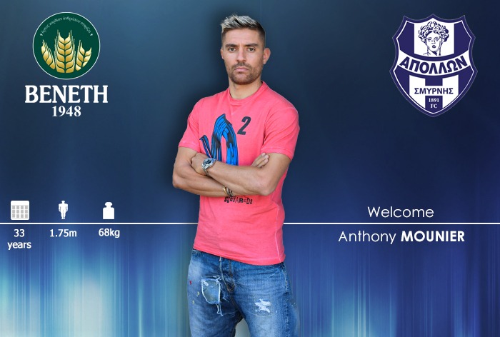 «Η ΠΑΕ Απόλλων Σμύρνης ανακοινώνει την απόκτηση του ποδοσφαιριστή Αντονί Μουνιέ. Γεννημένος στις 27/9/1987, στη Γαλλία, αγωνίζεται ως πλάγιος επιθετικός. Στο παρελθόν έχει παίξει σε Παναιτωλικό, Παναθηναϊκό, Μπολόνια, Αταλάντα, Μονπελιέ, Σεντ Ετιέν, Νις και Λιόν. Υπήρξε διεθνής με την Εθνική Γαλλίας Κ-21», αναφέρει η ανακοίνωση για τον πρώην παίκτη του Παναθηναϊκού.