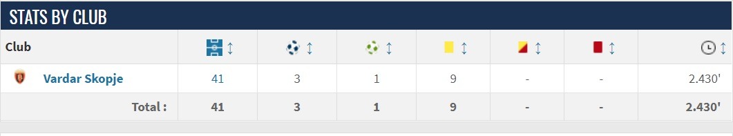Πέρσι είχε μια γεμάτη σεζόν με τη Βαραντάρ Σκοπίων με την οποία έγραψε 22 συμμετοχές και 2 γκολ σε όλες τις διοργανώσεις.