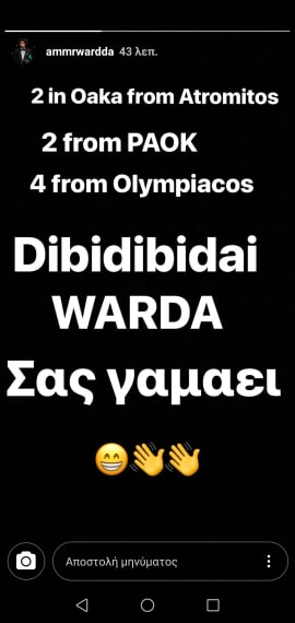Στο facebook ανέβασε δύο φωτογραφίες του από το ματς του Κυπέλλου στο ΟΑΚΑ και έγραψε το ακόλουθο: «Dibidibidai WARDA Σας γ@μ@ει».