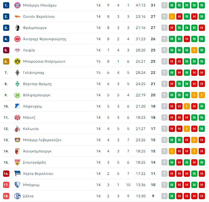 Το πρόγραμμα της 15ης αγωνιστικής της Bundesliga