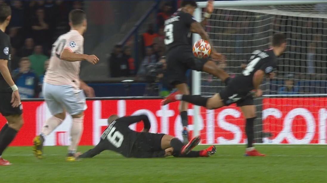 Το σουτ του Νταλότ στο 91ο πρώτο λεπτό της αναμέτρησης στο Παρίσι βρήκε το χέρι του Κιμπεμπέ. Ο νεαρός Γάλλος κεντρικός αμυντικός γύριζε την πλάτη του κι αυτό έκανε στην αρχή τον Νταμίρ Σκόμινα να μην καταλογίσει τη παράβαση. Αμέσως όμως πήγε να δει τη φάση στο βίντεο, έπειτα από την ενδοεπικοινωνία που υπήρξε. Εκείμ βλέποντας το βίντεο, δεν υπήρχε καμία αμφιβολία. Ο Κιμπεμπέ είχε σταματήσει την μπάλα με το χέρι, το οποίο βρισκοταν σε αφύσικη θέση. Ο Σλοβένος ρέφερι καταλόγισε την παράβαση και ο Ράσφορντ με εύστοχη εκτέλεση πεναλτι έστειλε τη Γιουνάιτεντ στην επόμενη φάση.