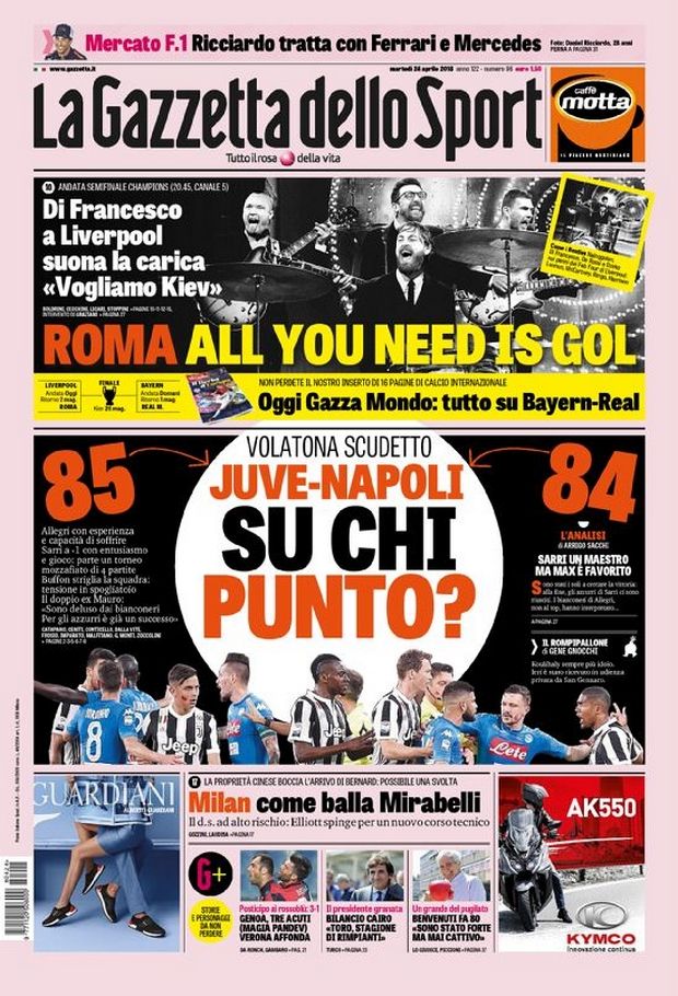 Έτσι λοιπόν η γνωστή εφημερίδα «Gazzetta dello Sport», δημιούργησε ένα πρωτοσέλιδο μεταμορφώνοντας τους παίκτες της Ρόμα στο θρυλικό συγκρότημα των Beatles, παραφράζοντας το γνωστό τραγούδι «All You Need is Love» σε «Roma, All You Need is Gol».