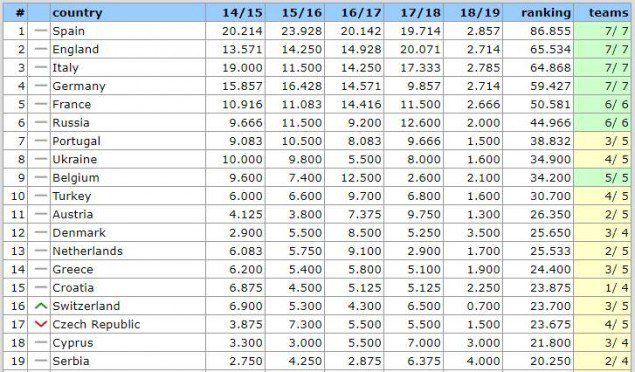 Εφόσον η Ελλάδα διατηρήσει αυτή τη θέση ως το τέλος της χρονιάς, θα συνεχίσει να βγάζει τον πρωταθλητή στον 3ο προκριματικό του Champions League και τη σεζόν 2020-21, με τον δευτεραθλητή στο 2ο προκριματικό (Champions League), τον Κυπελλούχο στον 3ο προκριματικό του Europa και τον 3ο-4ο της βαθμολογίας στον 2ο προκριματικό του Europa. Εάν πέσει 15η, ο πρωταθλητής θα ξεκινήσει ένα γύρο νωρίτερα στο Champions League.