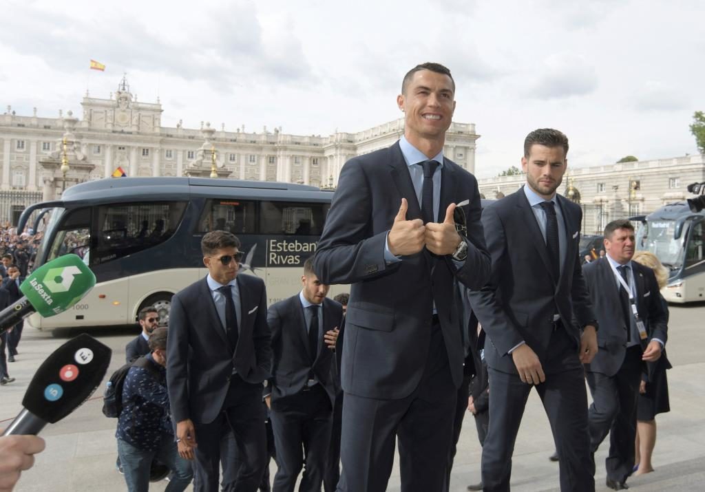 Ο Κριστιάνο Ρονάλντο, από την πλευρά του, πήρε το μικρόφωνο έπειτα από παρότρυνση του πλήθους και είπε: «Σας ευχαριστούμε για την παρουσία σας εδώ. Γράψαμε ιστορία χάρη σε σας που μας υποστηρίζεται πάντα. Είναι μια στιγμή χαράς και νιώθω πολύ χαρούμενος. Hala Madrid!»