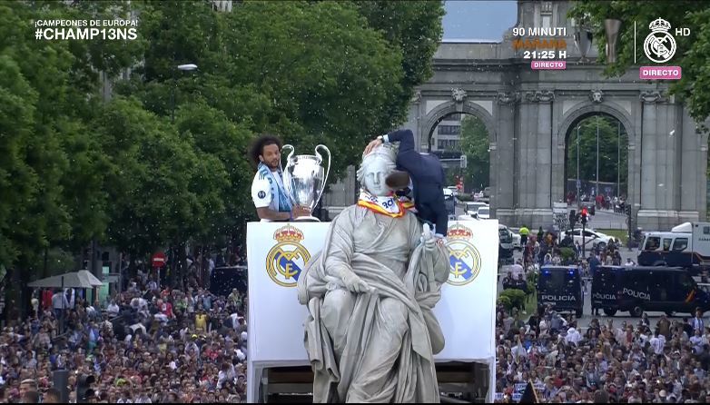 Ο Κριστιάνο Ρονάλντο έδειχνε ιδιαίτερα ορεξάτος και τραγουδούσε διά μικροφώνου, ο Ράμος πέρασε μία σημαία στο άγαλμα της θεάς Κυβέλης, ενώ ο Μαρσέλο απολάμβανε τη στιγμή με το κύπελλο ανά χείρας.