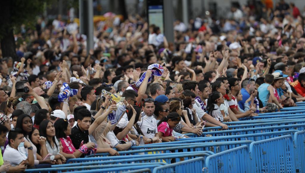Πολίτες της Μαδρίτης βρίσκονταν διάσπαρτοι στους δρόμους καθ’ όλη τη διάρκεια της διαδρομής, ενώ οι καμπάνες της Αλμουδένα ηχούσαν τη στιγμή που οι παίκτες κατέβαιναν από το λεωφορείο.