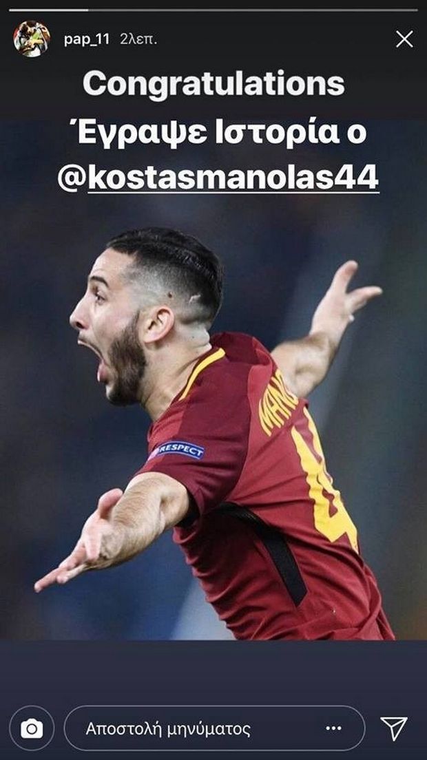 Το γκολ του Κώστα Μανολά, που σόκαρε και… έστειλε σπίτι της την Μπαρτσελόνα, προκάλεσε κύματα ενθουσιασμού, όχι μόνο στους Έλληνες φιλάθλους, αλλά και στους διεθνείς ποδοσφαιριστές, ειδικά στους… ξενιτεμένους, οι οποίοι αποθέωσαν στο instagram, τον ποδοσφαιριστή των «τζιαλορόσι»