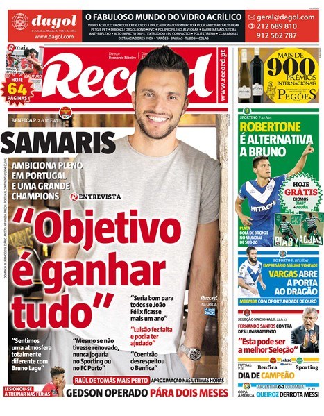 O Ανδρέας Σάμαρης μίλησε στην πορτογαλική εφημερίδα Record, τονίζοντας πως δεν θα αγωνιζόταν ούτε στη Πόρτο, ούτε στην Σπόρτινγκ Λισαβόνας.
