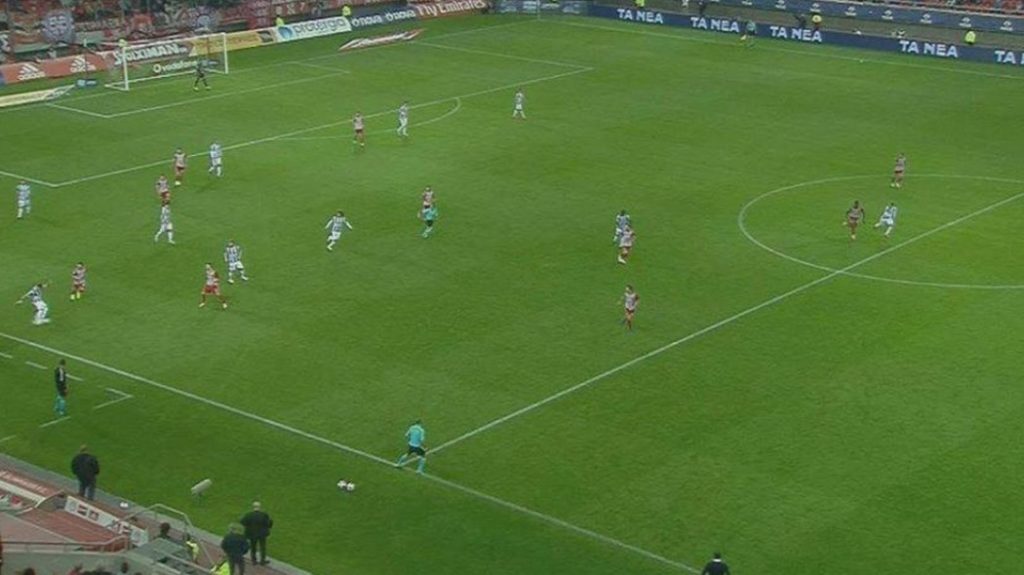 Στο 83′ ο Ισπανός φεύγει στην πλάτη της άμυνας και ο επόπτης Χριστάκογλου σηκώνει το σημαιάκι του. Ο Ναδάλες ήταν πιο μπροστά, αλλά αυτό δεν έπαιζε κανένα ρόλο, αφού βρισκόταν πίσω από τη σέντρα. Χοντρό λάθος από τον βοηθό.
