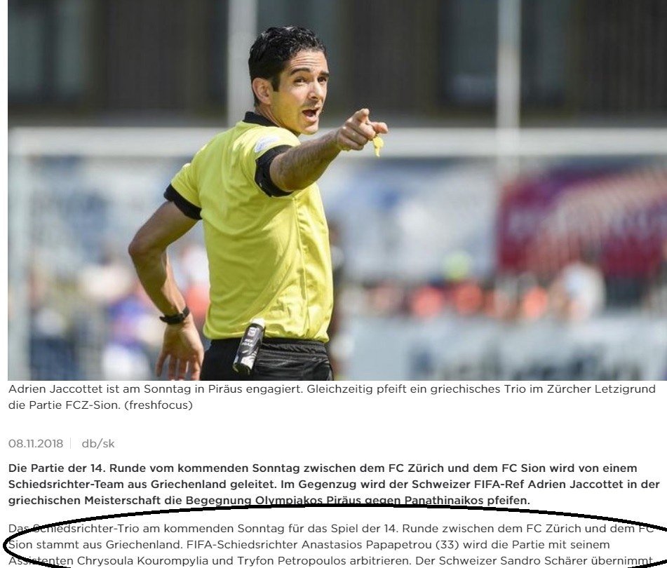 Την ώρα που εμείς στην Ελλάδα γκρινιάζουμε (δικαίως σε αρκετές περιπτώσεις είναι η αλήθεια) για τους Έλληνες διαιτητές και φέρνουμε τον Ελβετό Γιάκοτετ για το ντέρμπι του Ολυμπιακού με τον Παναθηναϊκό, οι Ελβετοί παίρνουν έναν δικό μας διαιτητή για ματς του πρωταθλήματος!