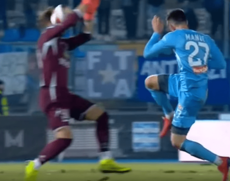 Το ριπλέι τον εκθέτει αφού η μπάλα από το σουτ του Μάνου, βρίσκει στο κεφάλι και όχι στα χέρια του Σέρβου γκολκίπερ, που αδίκως αποβλήθηκε.