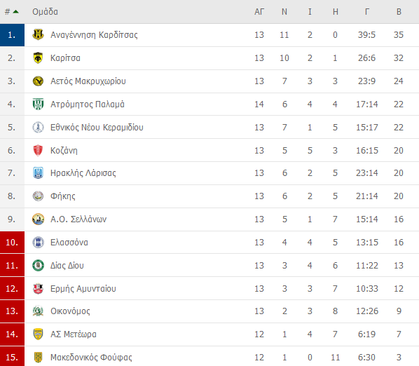 ΑΕ Καρίτσας – Αναγέννηση Καρδίτσας 1-3 (35′ Κυπαρίσσης / 38′ Πολίτης, 52′ Αρχοντής, 63′ Χασομέρης)