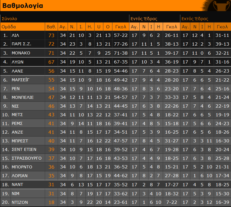 Αναλυτικά η 34η αγωνιστική της Ligue 1