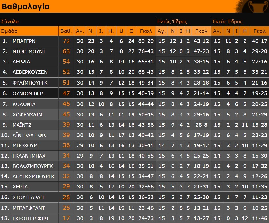 Κόντρα στην προτελευταία ομάδα οι Βαυαροί δεν άφησαν περιθώρια αντίδρασης. Μόλις στο 10′ με αυτογκόλ του Λάουρσεν έγινε το 0-1 και στο 45’+7 ο Γκνάμπρι από ασίστ του Κίμιχ έκανε το 0-2. Προς το φινάλε ο Μουσιάλα τροφοδοτήθηκε από τον Λεβαντόφσκι και διαμόρφωσε το τελικό 0-3. Με αυτή τη νίκη η Μπάγερν Μονάχου πήγε στο +9 από την Ντόρτμουντ και απομένουν ακόμη τέσσερις αγωνιστικές. Φαντάζει απίθανο να αλλάξει η κατάσταση.