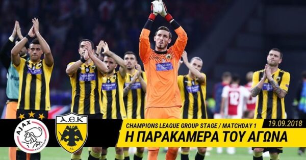 Η πρεμιέρα της ΑΕΚ στη φάση των ομίλων της φετινής διοργάνωσης του UEFA Champions League αποδείχθηκε δύσκολη. Η ΑΕΚ πραγματοποίησε καλή εμφάνιση για ένα ημίχρονο απέναντι στον Άγιαξ, όμως ένα γρήγορο γκολ των Ολλανδών στην επανάληψη , άλλαξε τις ισορροπίες και τη ροή του αγώνα, με την Ένωση να γνωρίζει την ήττα με 3-0. Η … Συνεχίστε να διαβάζετε το Η παρακάμερα του αγώνα Άγιαξ-ΑΕΚ.