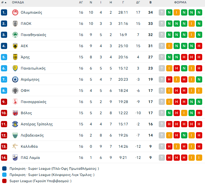 Η βαθμολογία της Super League μετά την γκέλα της ΑΕΚ